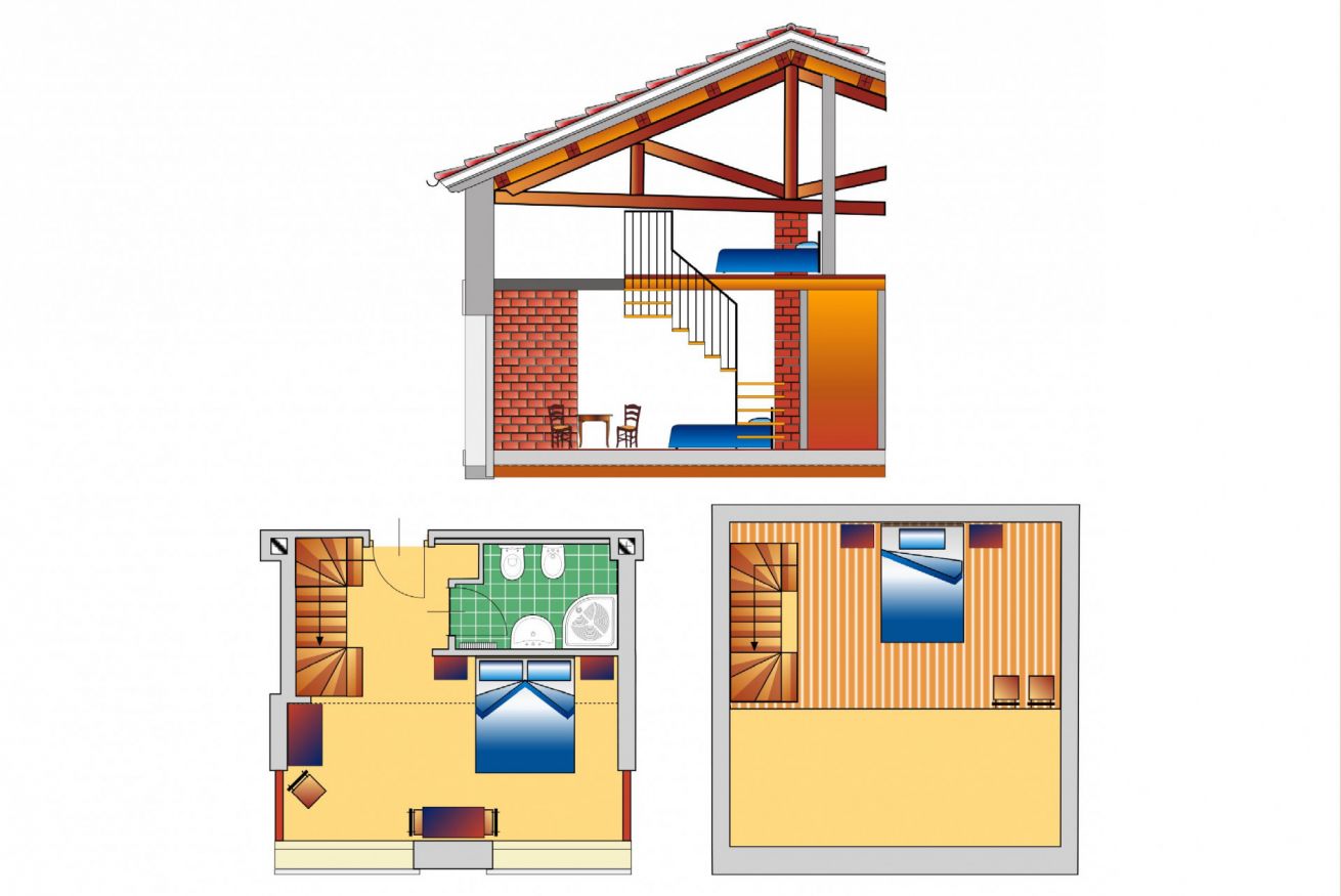 Bio Camera di 36mq su 2 livelli, con letto matrimoniale e letto alla francese, ideale per famiglie con bambini.